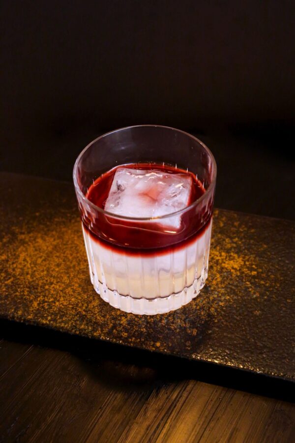 Pisco transparente – limon clarificado – syrup – vino carmenere.